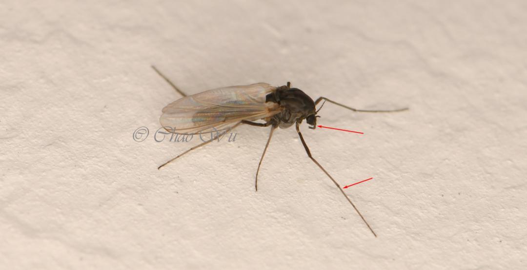 1.看前後足:在這些“蚊子”的六條腿中,搖蚊通常前足較長,而蚊科的“蚊子”後足較長。在停落時,搖蚊多用中後足支撐身體,而吸血的蚊往往用前中足支撐身體,而翹着後足。