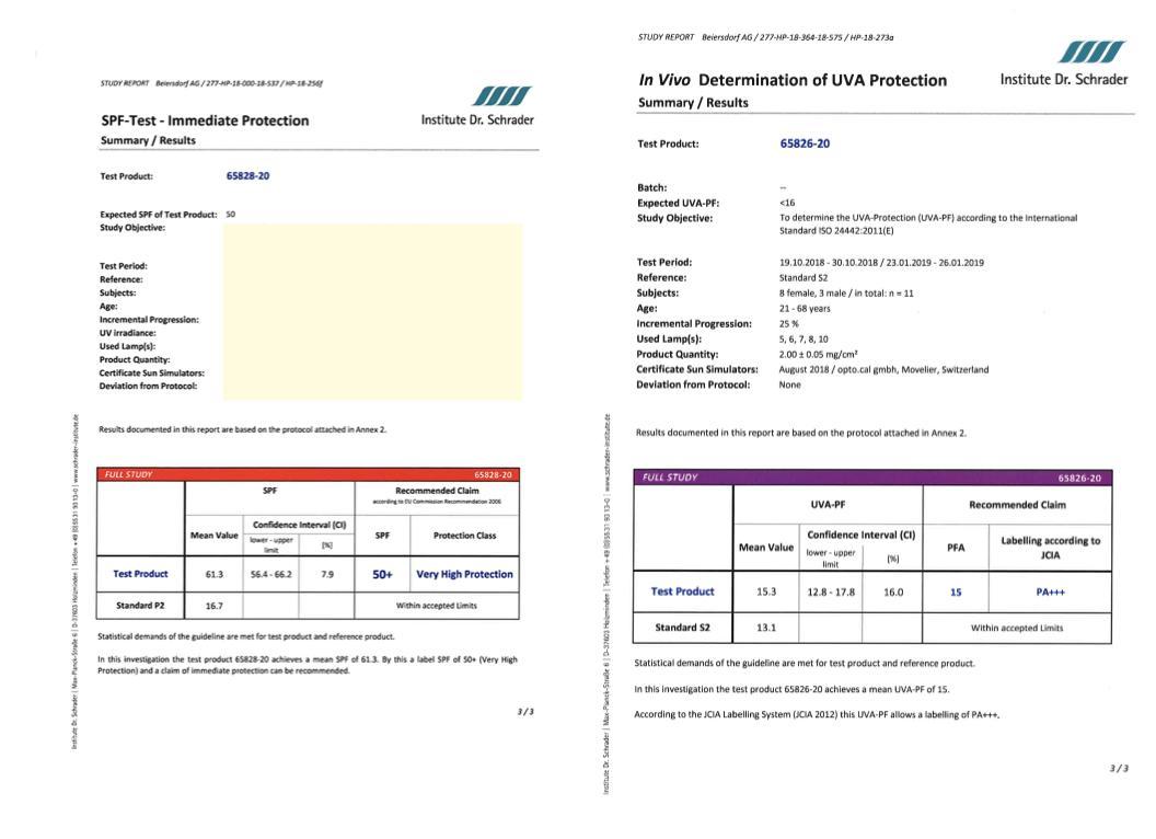 品牌方提供 l 防曬值測試(PA+++)STDR-068029C Final Report、防曬值測試(SPF50)STDR-068031C Final Report