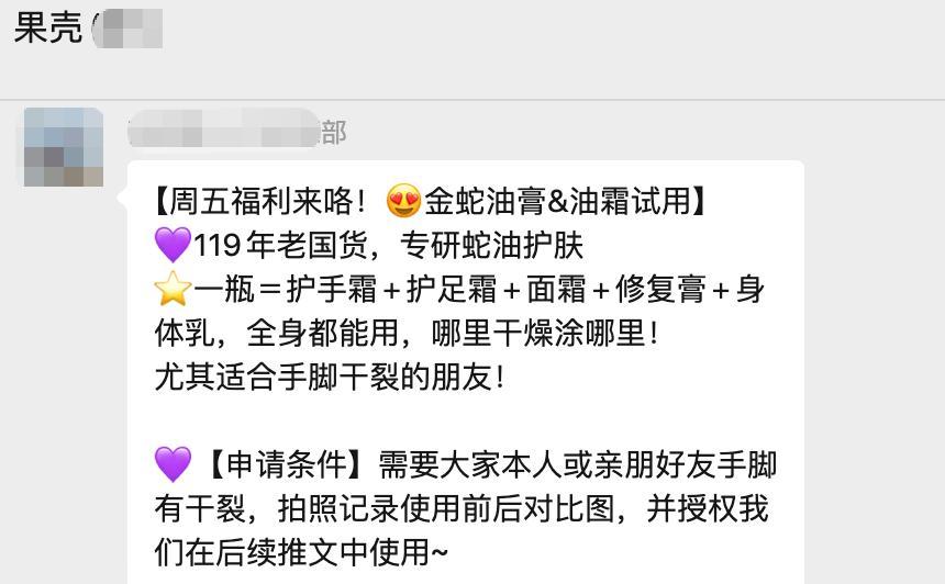 微信聊天截圖,使用蛇油霜反饋,實際使用效果因人而異