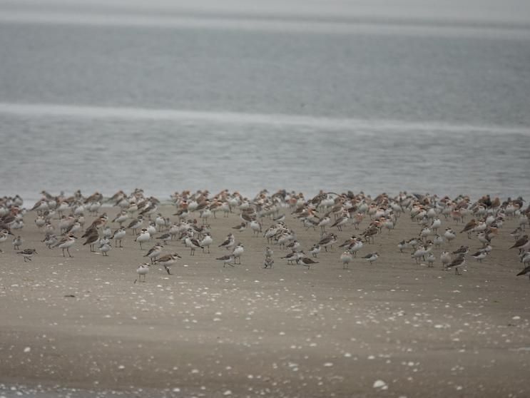 陽江散頭咀的水鳥羣,你能找到混在其中的勺嘴鷸嗎?(左滑看答案)| ChanIm