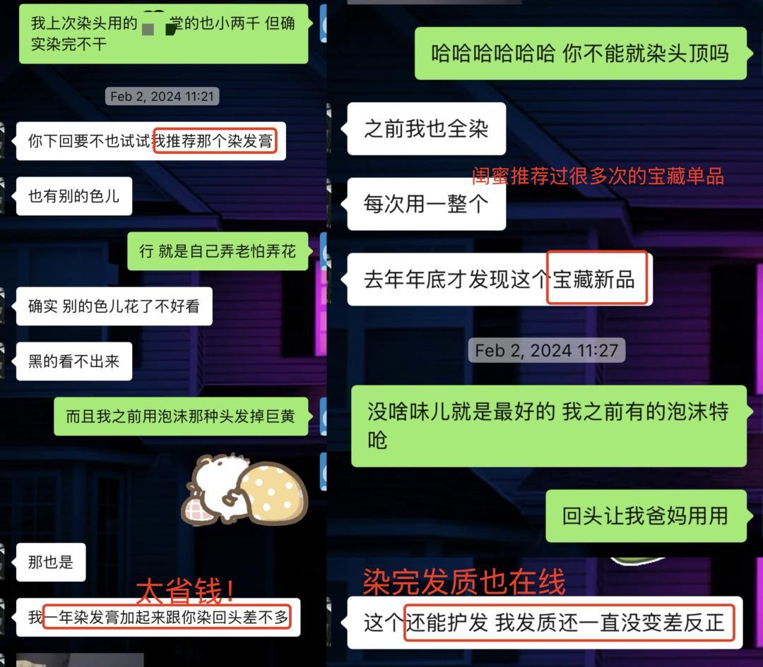 最開始我是被閨蜜種草的,她是染髮diy老玩家,訴求主要是【遮白髮+不毀髮質+顯髮質好】,平時也經常買來給爸媽用