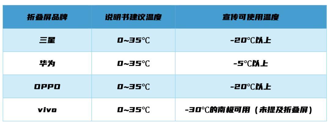 目前主流摺疊屏手機,說明書上 標明的適宜工作溫度都是0-35℃