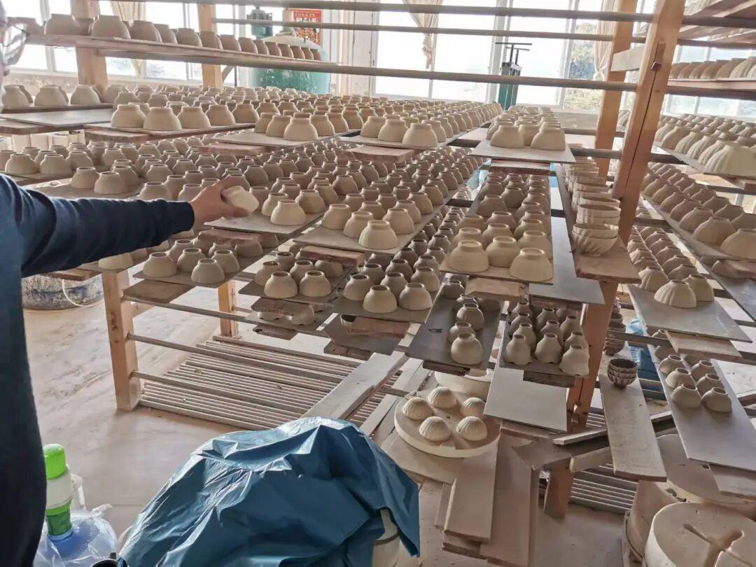 相比工業瓷器,手工燒製的魅力,一部分在於可以實現『 流水線拉坯 』迭代十幾年都很難做到的——厚重質感、手工修型、獨特器型。