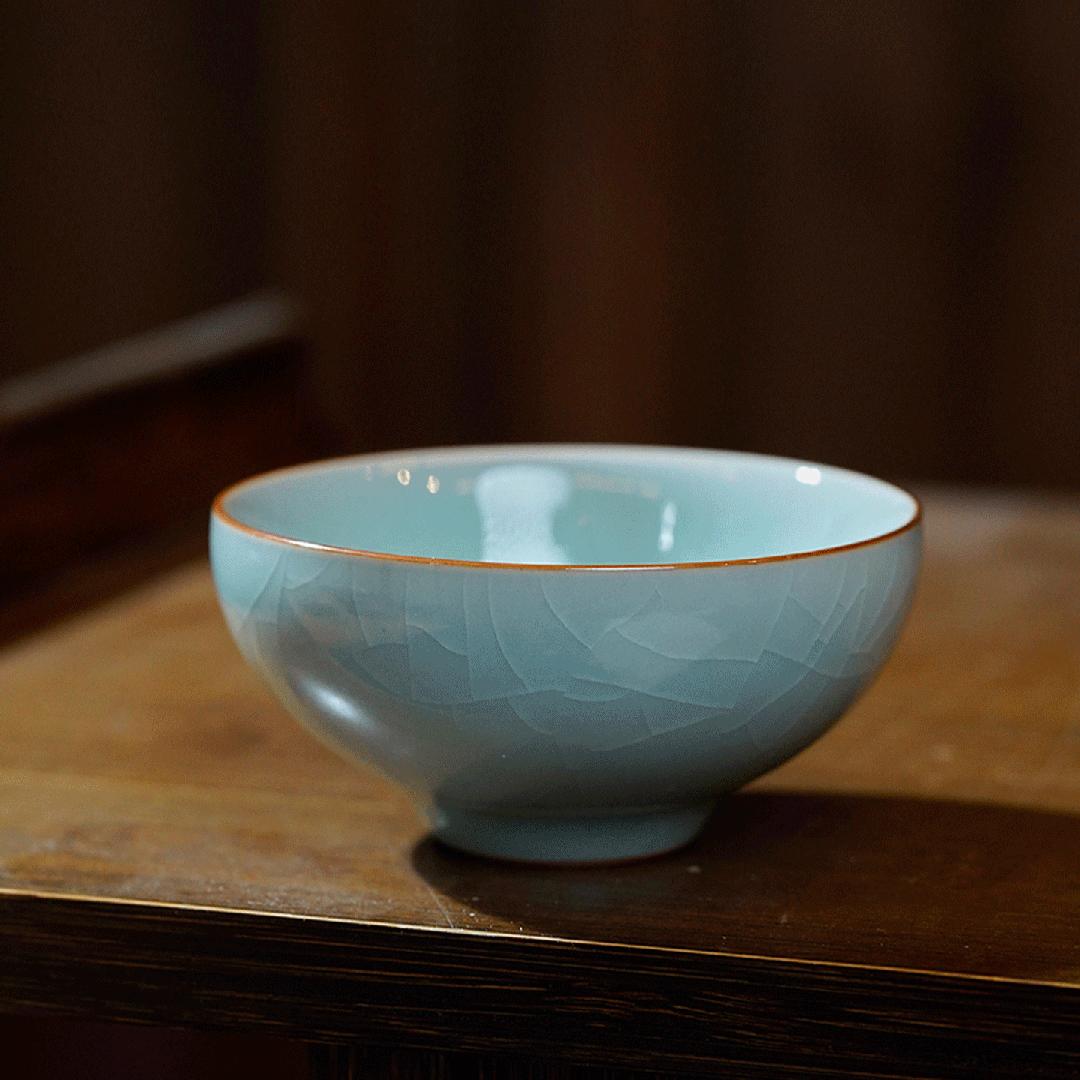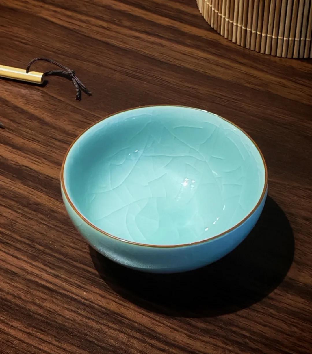 汝窯青釉杯的溫潤適合搭配白茶或普洱熟茶。