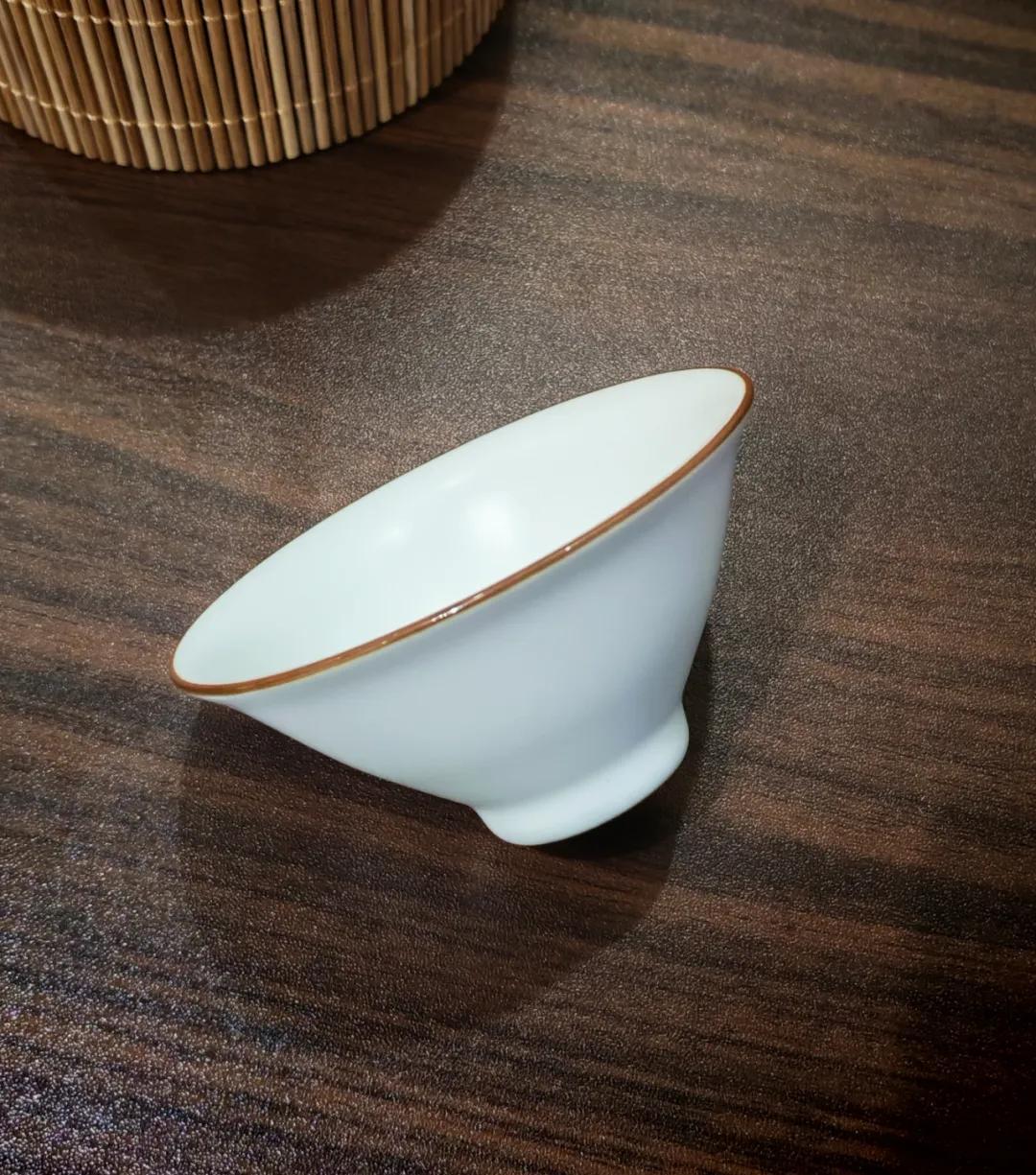 而杯口沿的一抹褐邊,更是點睛之筆——這是對宋代定窯芒口鑲邊工藝的復刻。