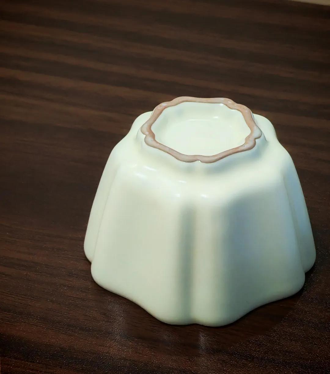 杯身以菱花爲造型,杯口呈菱花狀,線條婉轉柔和。