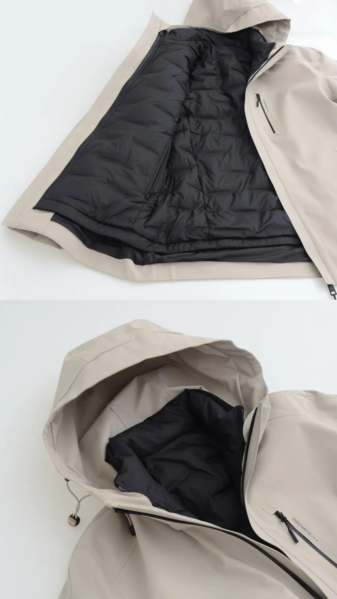 單穿外面一層是輕便的輕羽外套,冬天把外層和內膽合在一起,就是阻擋風雪的鵝絨服,還比一般鵝絨服更具戶外屬性。