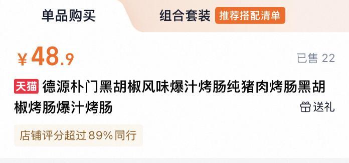 德源樸門黑椒風味爆汁烤腸(白豬烤腸)日常價¥48.9/盒