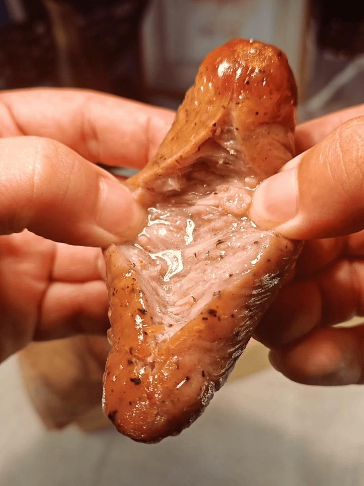 品嚐的時候,天然腸衣脆彈,一口咬下去汁水在嘴裏爆發。