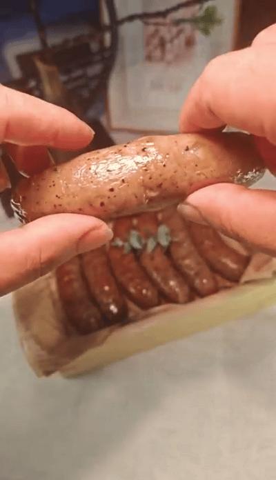 由農場自養豬肉製成的烤腸,沒有多餘添加劑。