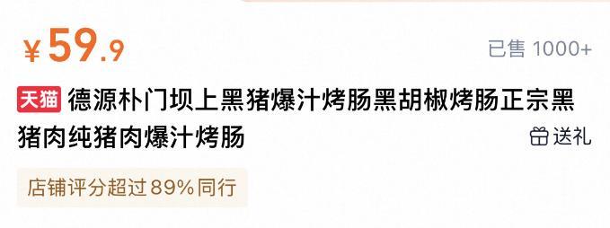 德源樸門壩上黑豬爆汁烤腸(黑豬烤腸)日常價¥59.9/盒