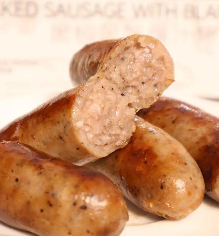 透過薄薄的天然腸衣,甚至能隱約看到裏面的黑胡椒顆粒和大塊肉粒,顏值雖然 “樸素”,但安心值直接拉滿!