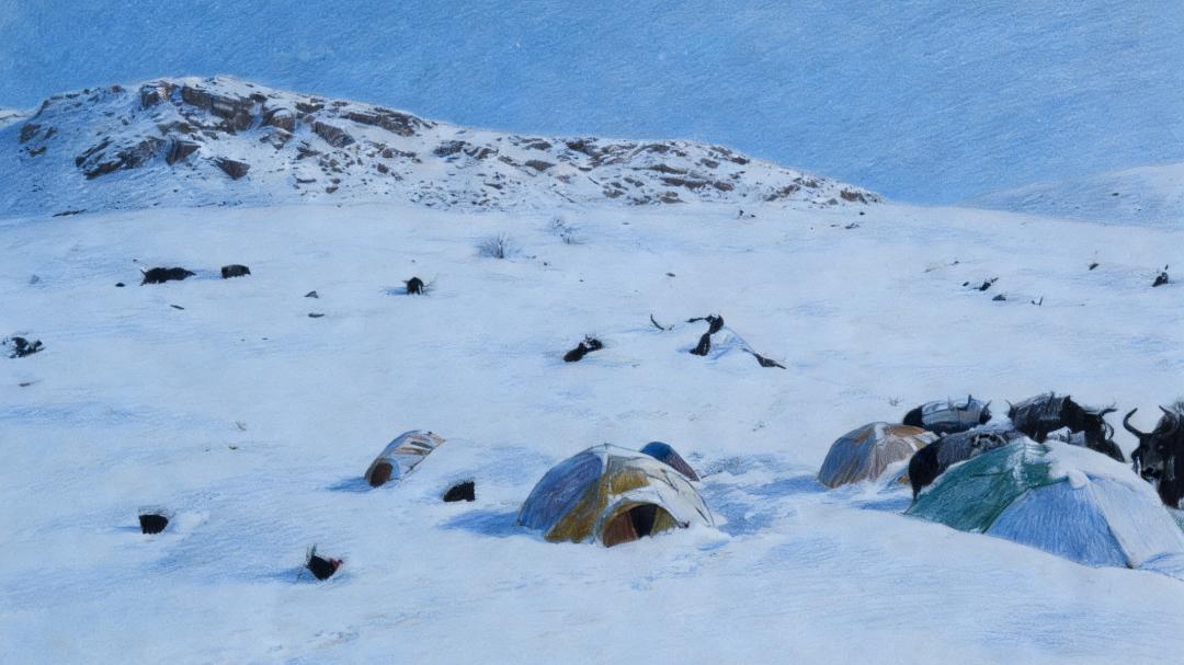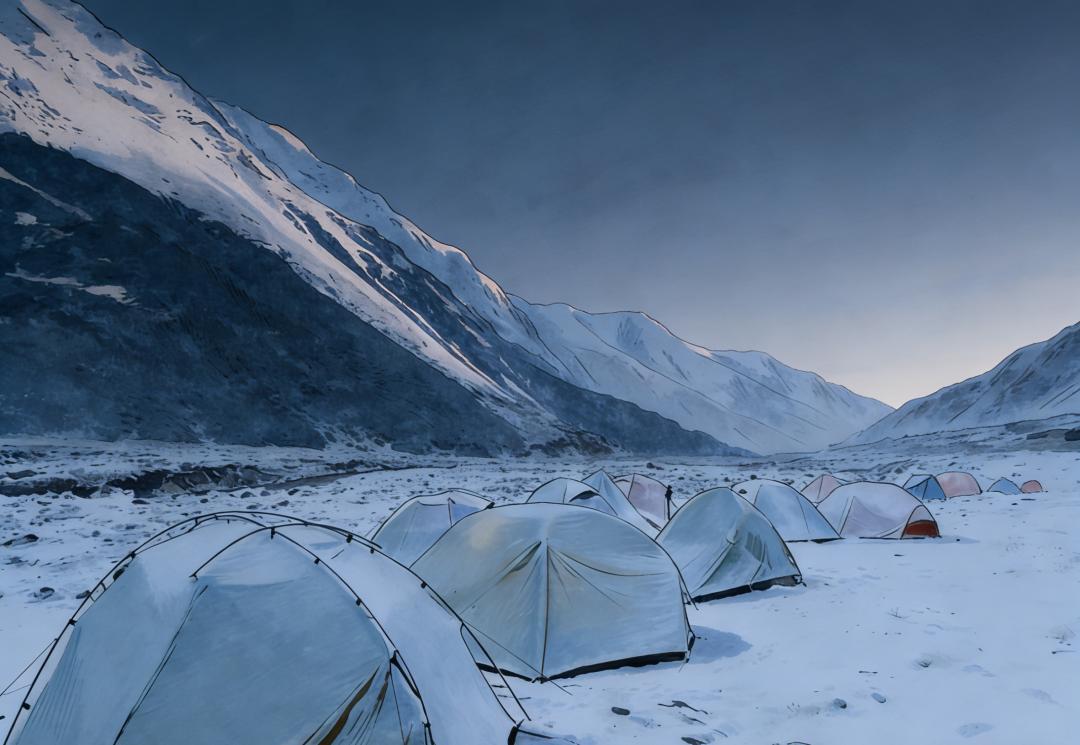 左上圖:2025年十一期間珠峯東坡的徒步人潮;右上圖:10月5日早晨,雪幾乎掩埋了帳篷;下圖:當地縣委、縣政府組織引導遊客撤離 | 豆包AI/央視新聞