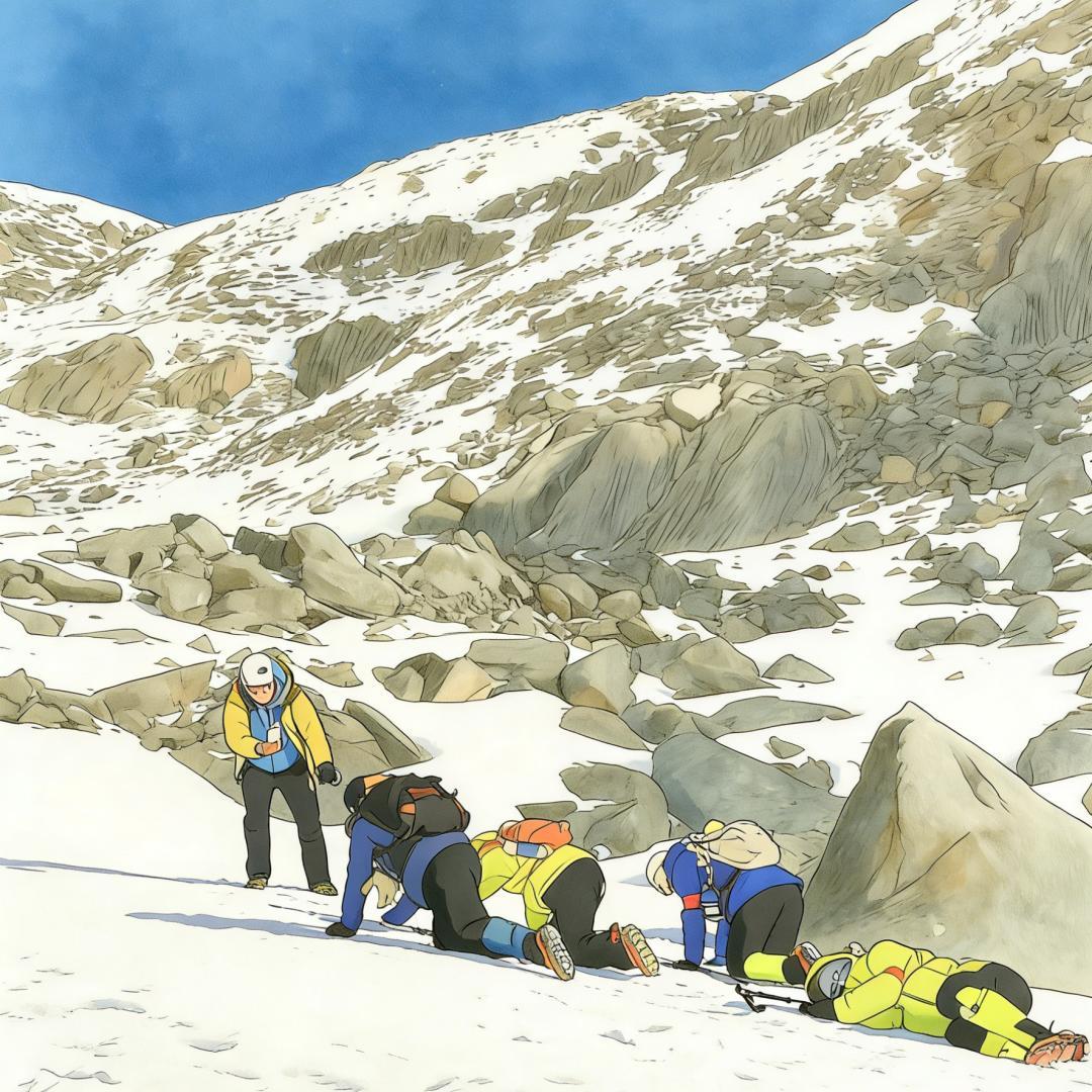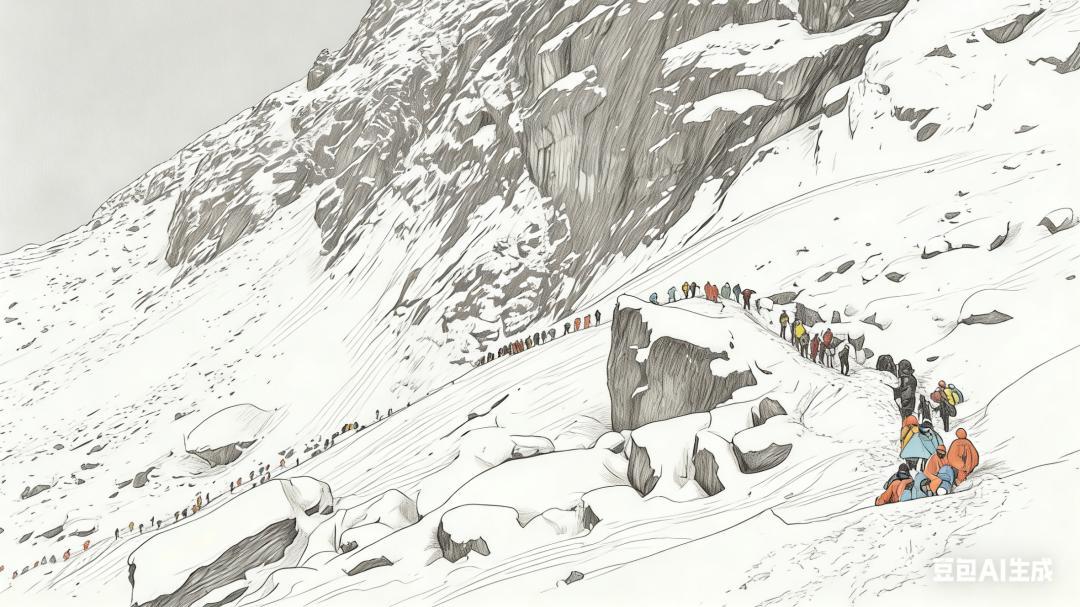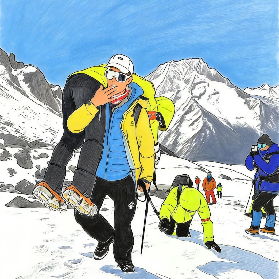上圖:上山前“有腿就行”“媽媽,人生是曠野”;下圖:上山後“嚮導救救我”“曠野,人也是媽生的” | 豆包AI