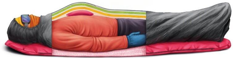 如果隊友失溫動不了,等待救援時儘量這樣包住TA:最外層是防風防水的外罩,裏面墊一層毯子或衣服,軀幹上放暖寶寶等(不要放四肢),戴手套,裹好頭面部和頸部 | 參考文獻[5]