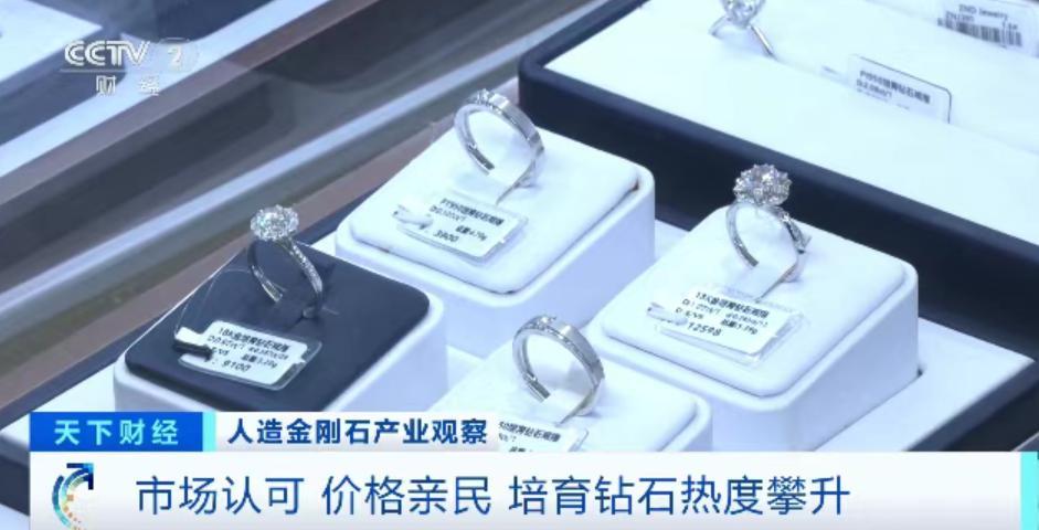 在央視網的報道中,“以1克拉國產鑽石爲例,2020年售價約爲8000元,如今3500元左右,而同等品質的天然鑽石仍需4萬元以上。”