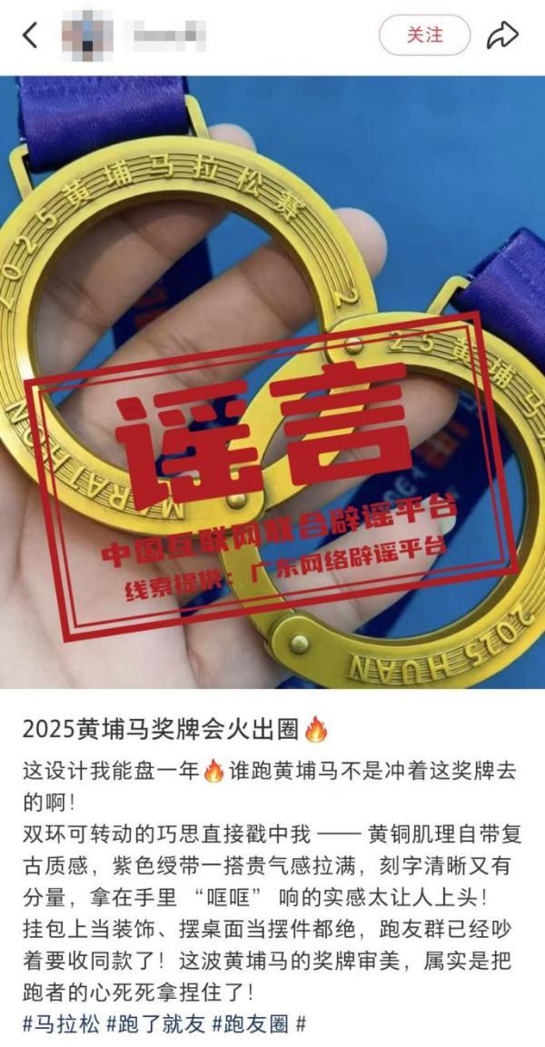 今日闢謠|2025黃埔馬拉松完賽獎牌爲手銬型?