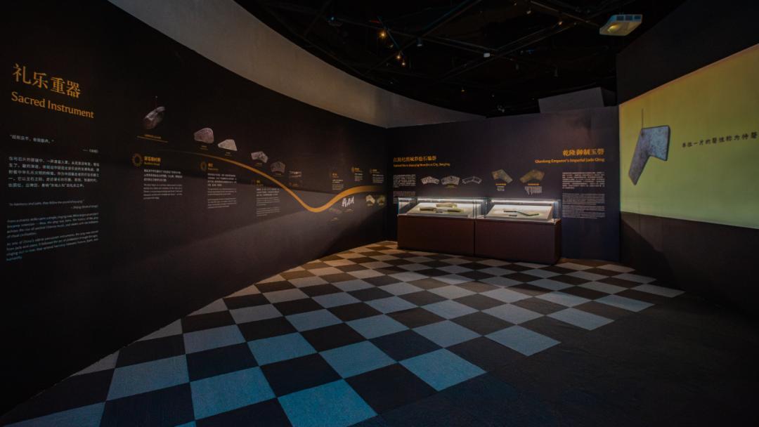特展的第三部分名爲“星石有音”。自然,前文所提到的重磅展品編磬“萬籟寂”就是這一部分的壓臺之作。不過,爲了清晰地說明“磬”作爲樂器和禮器的文化意涵,這裏還一併展出了兩件國家一級文物——春秋戰國時期紀南城彩繪石磬和乾隆御製玉磬。可以說,“萬籟寂”的誕生,是華夏禮樂文明和現代隕石研究交相輝映的結晶。在物質文明和科學進步極其輝煌的今天,人類終於開始用隕石來嘗試“跨界”和“創造”。