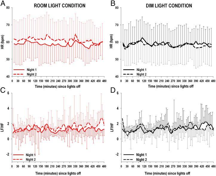那麼,光污染會怎麼影響到我們的身體的呢?爲了探究這個問題,研究人員把 20 名參與者分別安排在昏暗的房間以及開燈的房間中入眠,在夜間同步監測他們的心率。
