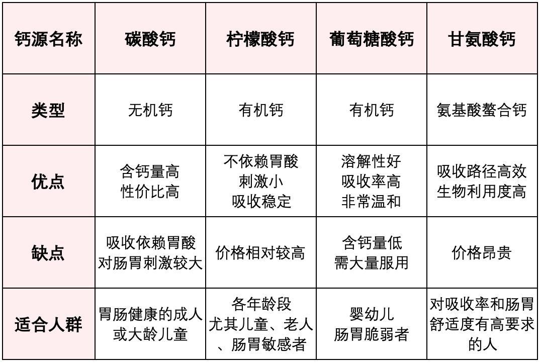 市面上鈣劑種類繁多,核心差異就在於“鈣源”,這決定了鈣的吸收效率、對胃腸的友好度以及適合人羣。