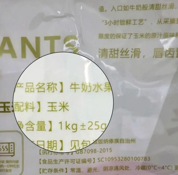 1、玉米數量/收到玉米總段數(一般爲10~13段左右);2、玉米皮薄,真空後有些顆粒會壓扁,屬於正常現象;