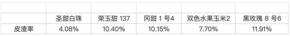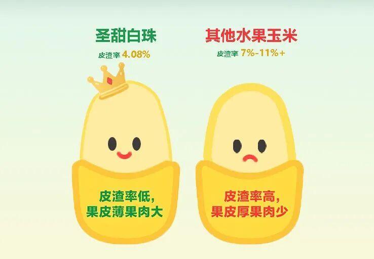 對比市面上常見的水果玉米“皮渣率”,聖甜白珠只有別的玉米的50%,可以是說獨樹一幟了。