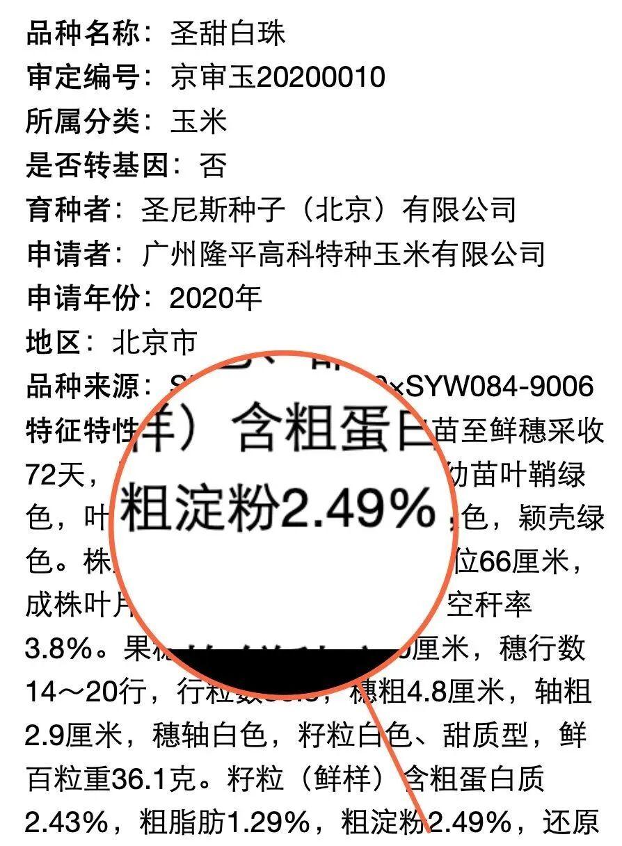 聖甜白珠水果玉米粗澱粉含量也很低。