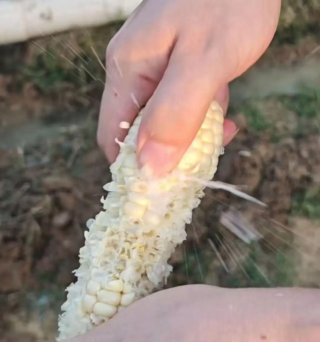 用手指輕輕擠壓玉米粒,奶白色的果漿就迸發出來啦,空氣中都瀰漫着玉米的香甜味~