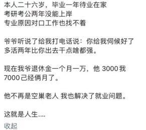 一萬的退休金,爺爺留三千,發你七千,空巢老人和青年就業的問題同時得到了解決。