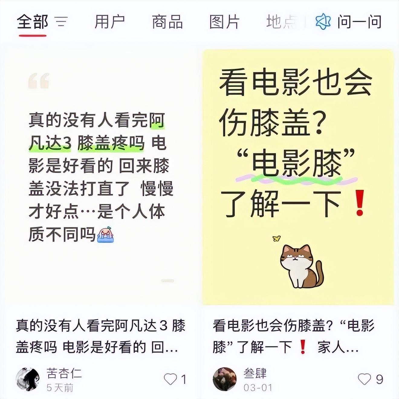 不少網友看完電影會膝蓋疼(小紅書截圖)