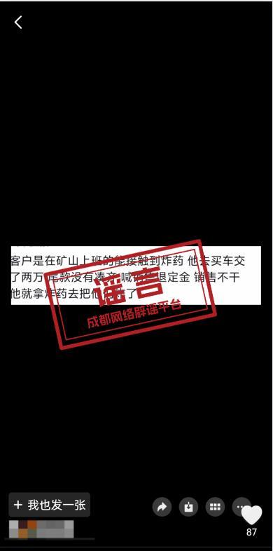 成都警方再通報“男子4S店外引爆易燃物”,查處2名造謠者