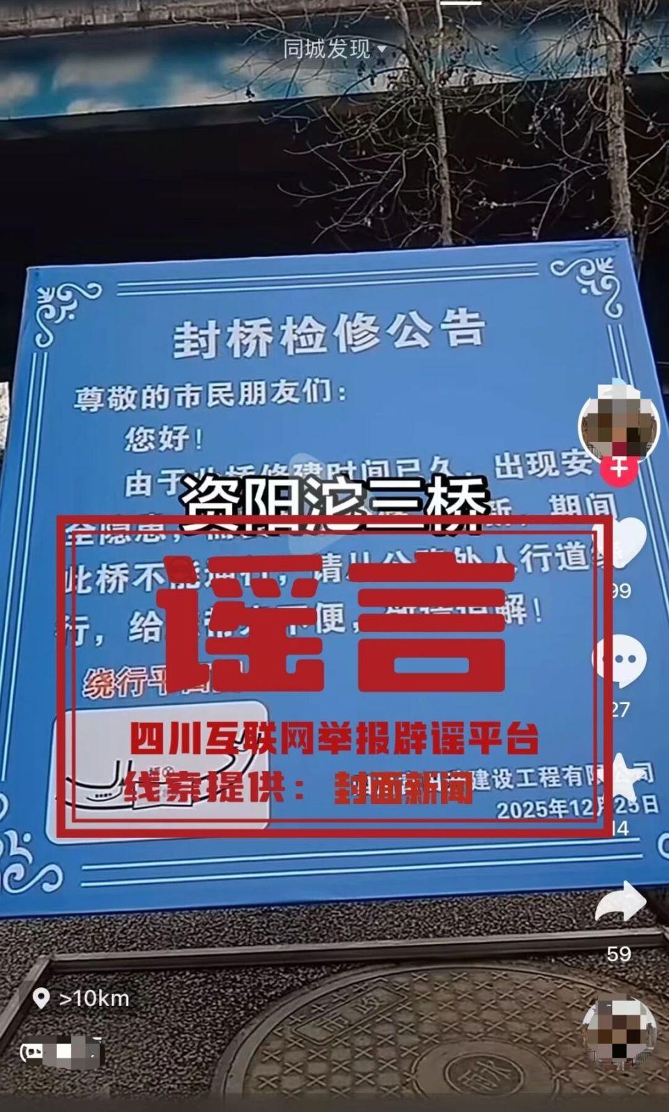 “四川資陽沱三橋要封橋檢修”系誤解——熊貓斬謠(2025年12月30日)