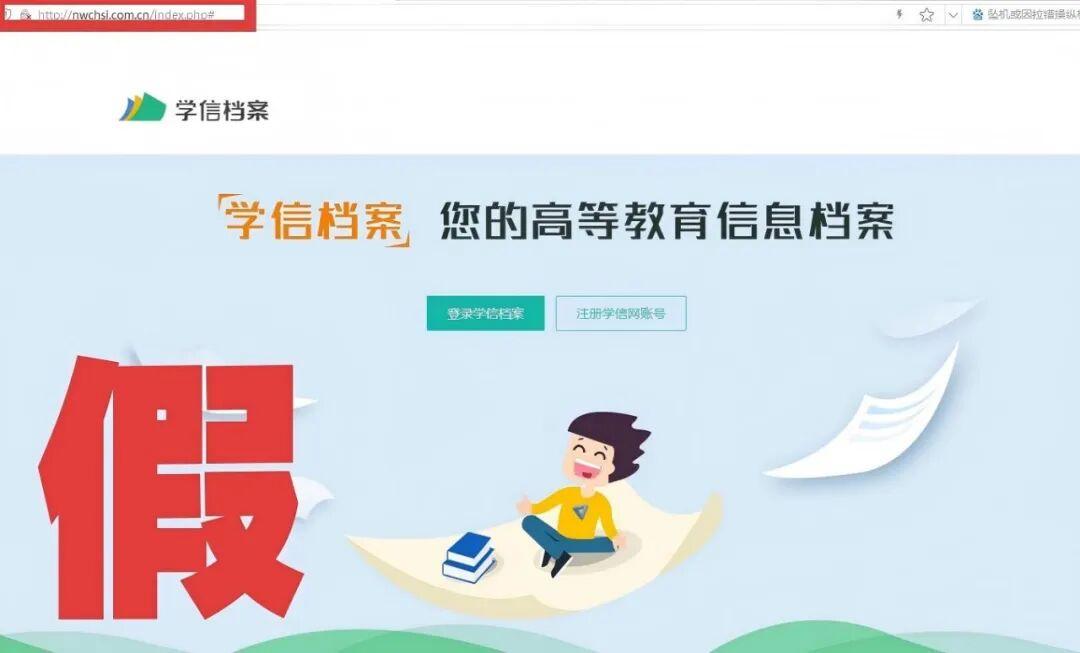 不法分子仿冒教育部學信網,製作虛假學信檔案查詢網站,誘騙網民輸入身份信息、高等教育信息等,造成網民信息泄露。