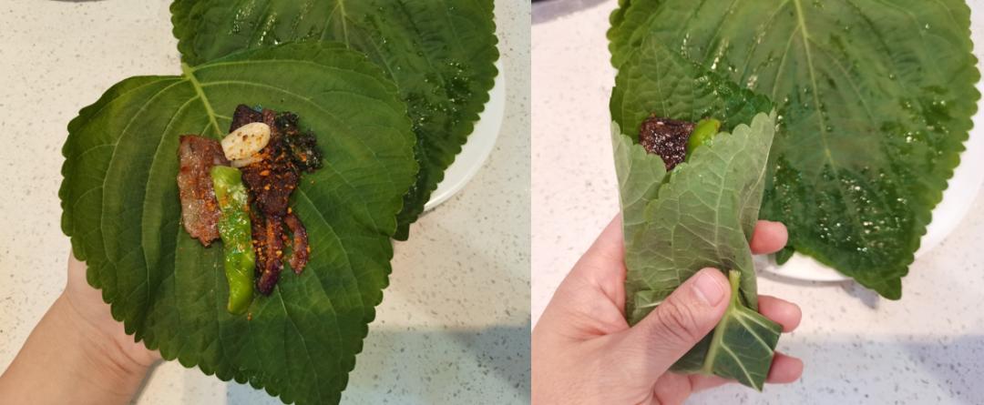 紫蘇葉包烤肉,很多人都喫過吧!一口就把紫蘇的香味和肉香全部都炫進嘴裏啦!