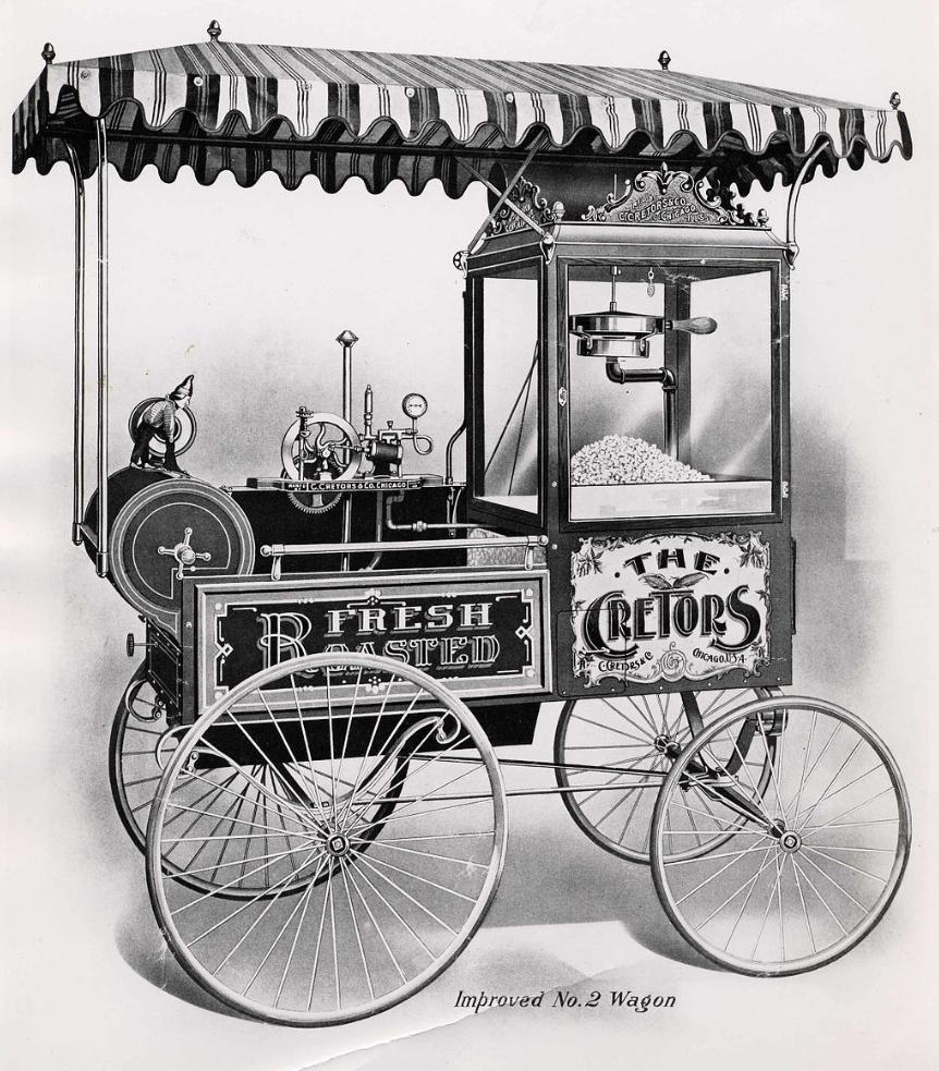早在3000多年前馴化玉米的印第安人就已經掌握了做這種爆米花的技術,而將其推廣成爲一種全球性食品的則是一位名爲查理斯·克里斯特(Charles Cretors)的美國人的功勞。在1893年查理斯改良了爆米花機將其小型化並裝上了輪子,把這玩意兒帶到了芝加哥世博會,之後爆米花攤就風靡於西方國家。
