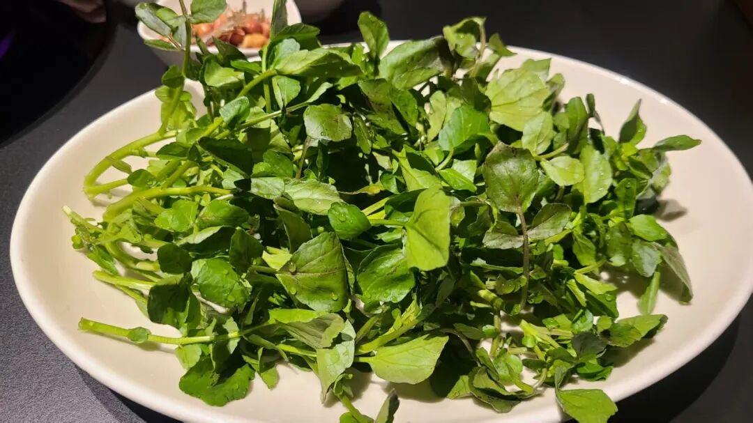 作爲潮汕火鍋的標配,西洋菜是平衡肉類的好食材。潮汕牛肉火鍋講究食材的新鮮和營養搭配,西洋菜的加入不僅豐富了火鍋的口感和色彩,還爲其增添了更多的營養價值。