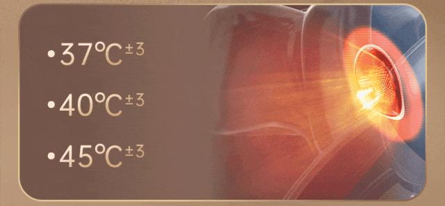 熱敷有3檔溫度可調, 打開加熱後,發出溫暖 的紅光,升溫很快, 由內而外深度放鬆肌肉。