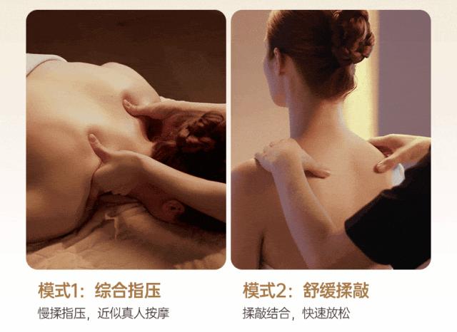 3、4種模式+3檔力度+3檔溫度調節,頸部推拿、肩周揉捏、背部推拿、腿部放鬆,哪裏酸脹按哪裏。