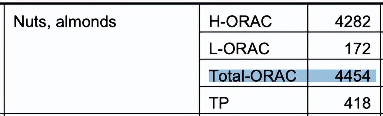 杏仁的抗氧化能力值(圖源:參考文獻[4])