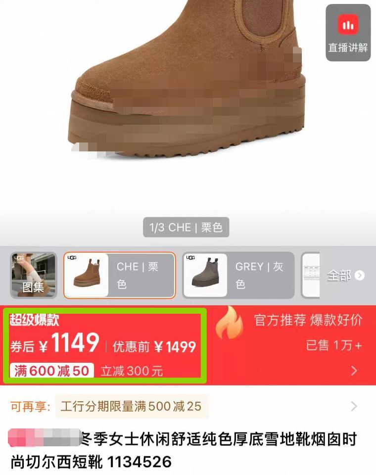 在果殼直播價的起程雪地靴的皮料、工藝、工人標準,大家可以放心可以去對比,甚至部分細節(如鞋墊、鞋型)更優化,讓用戶感知“花小錢買大品牌的品質”。