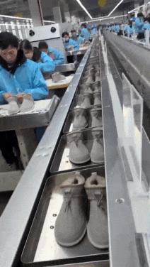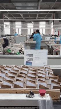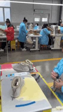 我們先來看下大品牌生產線的流程實拍:每位員工負責雪地靴不同部位、配件。旁邊都有一個標準看板,每個配件都有隆豐的標準,所以每一位員工也都是一個質檢員!