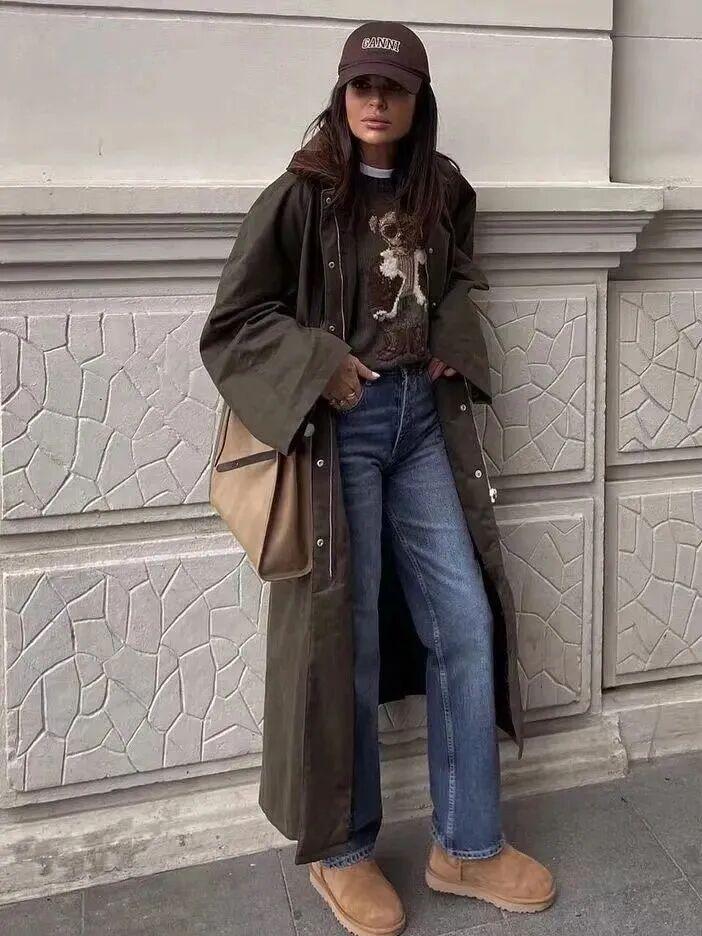 經典搭配:牛仔褲+風衣,今年流行的闊腿褲+厚冬棉衣,通勤省時間的寶藏穿搭,不出錯還好看!