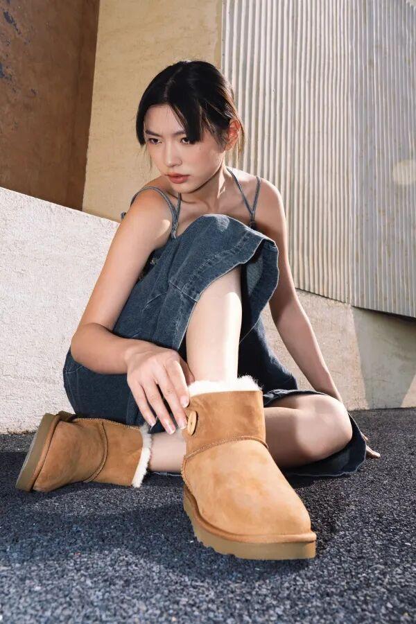 這可是經典中的經典短筒靴,爲了讓大家穿出更好的修型效果,起程加了一個“木扣”設計,復古感滿滿,讓可愛加倍!