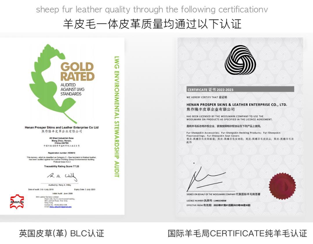 隆豐的產品通過嚴格的歐盟出口標準,所有皮毛均獲國家羊毛協會純羊毛認證!