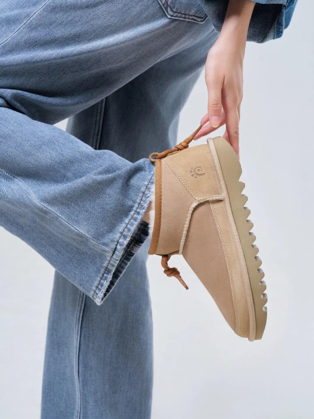 鞋面是牛皮反絨皮,更耐髒,內裏近16mm天然毛防風保暖。