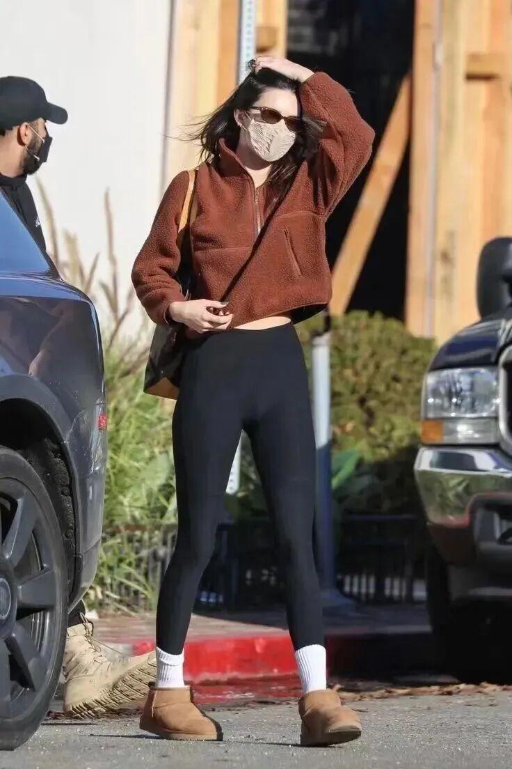 這幾年爆火的瑜伽褲,和雪地靴適配意外的高,穿白襪或裸腳踝,怎麼搭都是潮流的標籤look!