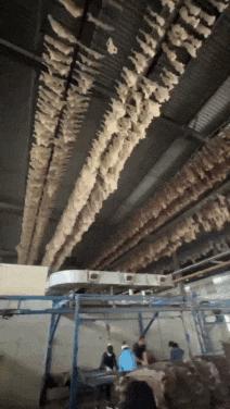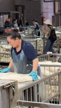 羊皮先通過生態鞣製工藝完成水洗羊皮的過程,接着是烘乾、晾曬,每日加工超過3萬張皮毛!