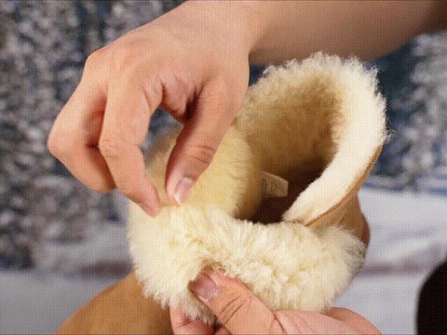 很多買雪地靴朋友或多或少都有上面這些問題,甚至穿一兩次後“內裏絨塌陷”,核心原因就是非“羊皮毛一體”。