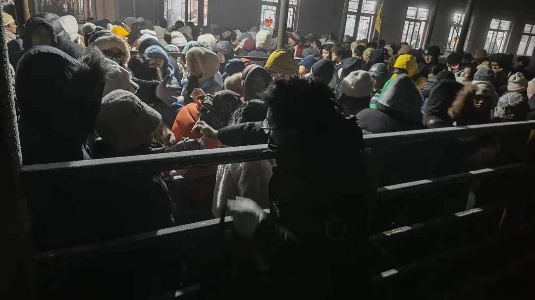 ▲景區表示,遊客聚集在酒店大堂,是因爲該區域免費提供暖氣