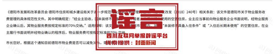 謠言:德陽空置房屋物業費可減免30%?
